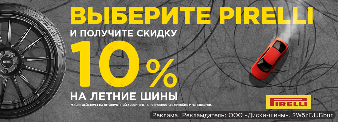 - При покупке комплекта (от 4-х) летних шин PIRELLI (включая шин Formula) предоставляется скидка 10%.