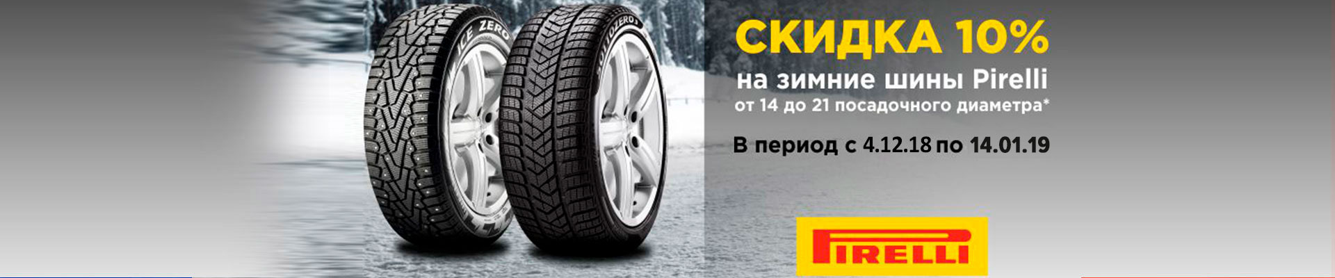 * Акция действует с 04.12.2018г. по 14.01.2019г. при покупке зимних шин Pirelli, участвующих в акции, путем онлайн-заказа на сайте или из наличия в торговой точке.